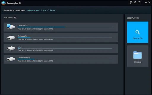 If the Recycle Bin has been emptied or there are no previous versions of the file accessible, I will choose to use file recovery software as a final resort. To recover deleted Excel files, I will incorporate a specialized data recovery tool such as RecoveryFox AI. This software assists me in a quick and easy manner to recover lost or deleted Excel files even in cases like accidental deletion, formatting or emptying the Recycle Bin. It scans my storage device using AI mode to bring back files and thus, restoring the possibility of recovering Excel files.